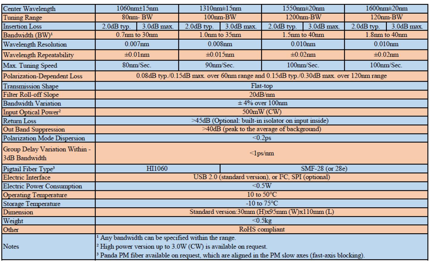 精确可调光纤滤波器,提供高波长分辨率和出色的波长重复性。