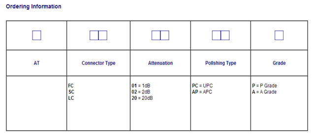 FC,SC,LC连接器; 1dB,2dB,20dB插入式固定衰减器