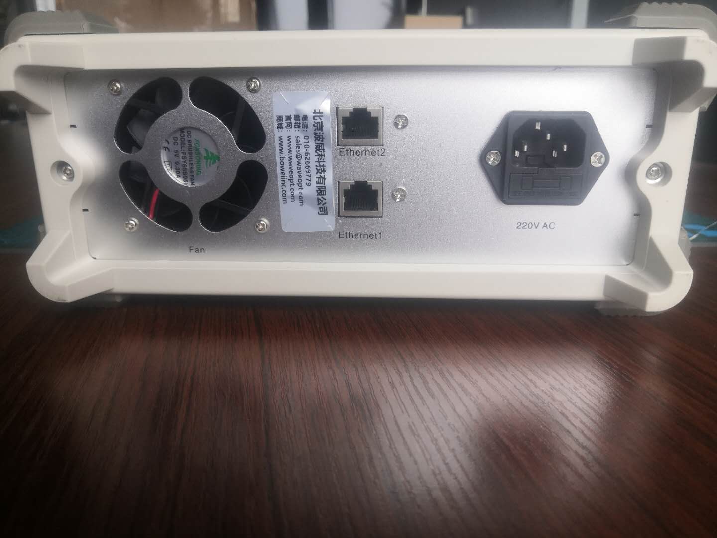 从左到右:Fan:风扇、Ethernet1、2:以太网接口1、2。电源输入接口:220VAC。