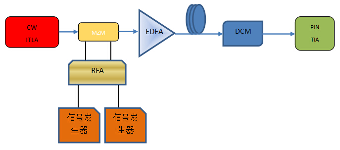 随着光纤骨干网中传输的数据和视频业务的迅速增长,系统中的波分复用(WDM)波长数及单波长传输速率逐渐提高,单波长40Gb/s及100Gb/s传输技术成为业界研究的热点。与此同时,高速光纤通信系统中的色度色散(CD)、偏振模色散(PMD)、非线性效应及链路中光放大器的自发辐射噪声(ASE)成为制约其发展的主要因素,解决高速光纤通信系统中的信号损伤问题已变得越来越迫切。采用新型DQPSK编码可提高系统的色散容限,如下为简单的结构组成。